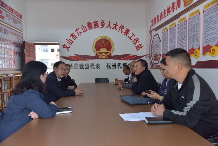 近日,文山州人大常委会党组书记王毅带队到文山市东山乡调研指导县乡两级人大换届选举及重大民生实事项目人大代表票决制工作,文山市人大常委会主任柏应明陪同调研。