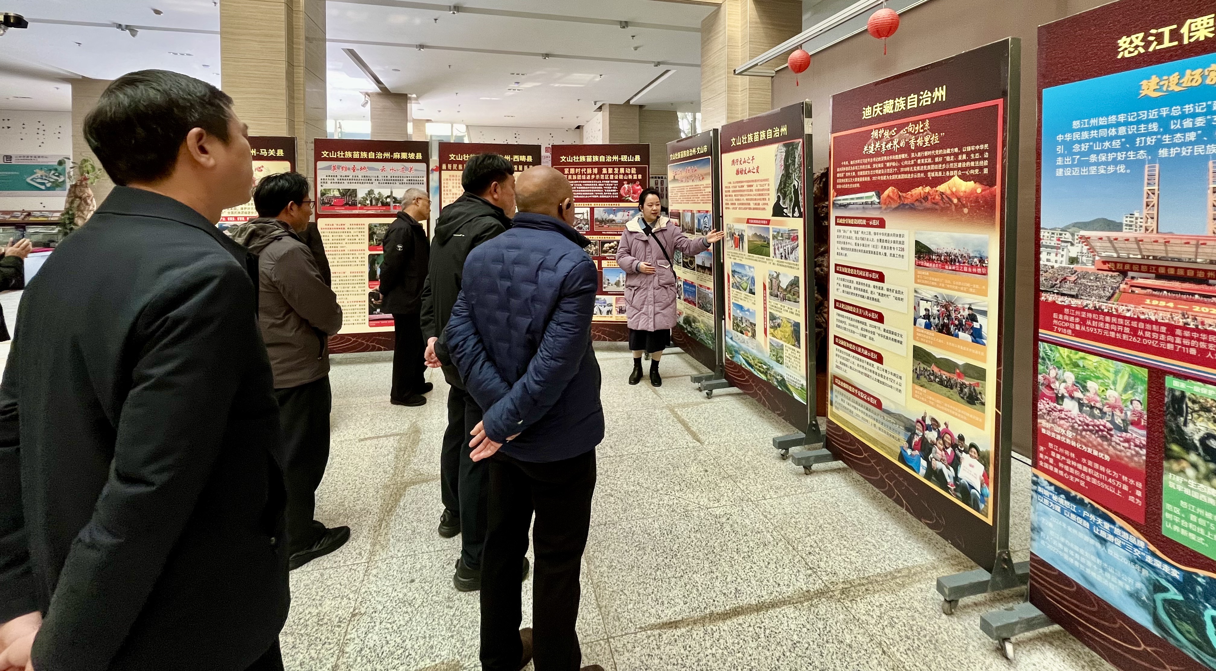 1月17日,文山州人大常委会组织干部职工前往文山州博物馆,参观云南省建设民族团结进步示范区10年成就展。
