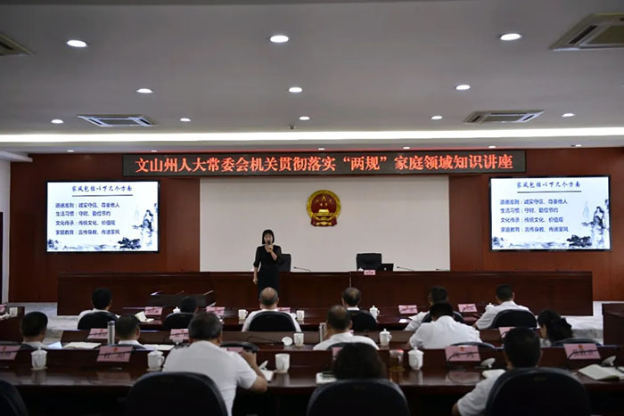 为认真贯彻落实习近平总书记关于家庭家教家风建设的重要论述,进一步推进《文山州妇女儿童发展规划(2021—2030年)》贯彻落实。8月16日,州人大常委会机关开展贯彻落实“两规”家庭领域知识讲座,邀请全国家庭教育高级指导师、文山州家庭教育协会常务副会长陈宛秋作专题讲座。