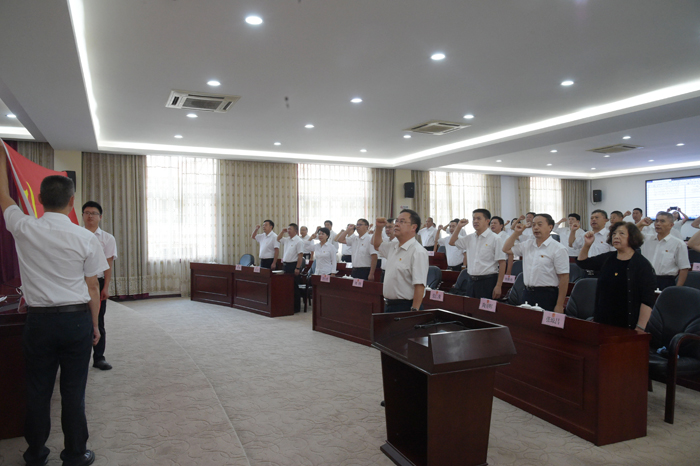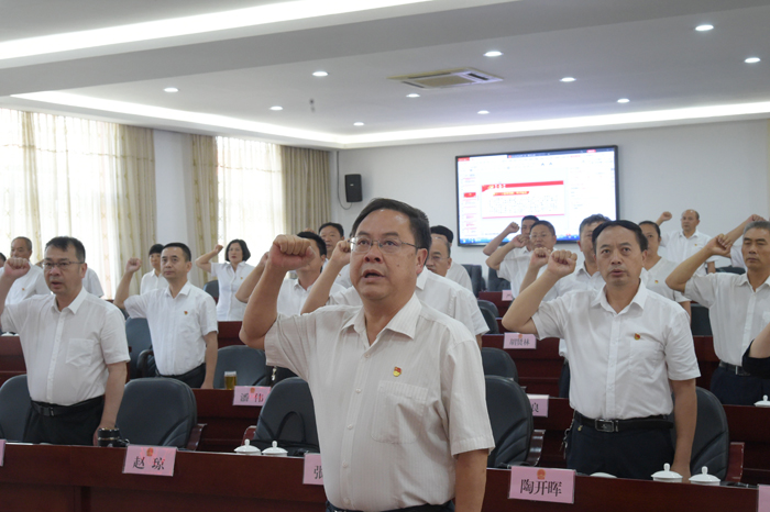 州人大常委会党组书记、主任王毅率全体干部职工重温入党誓词。
