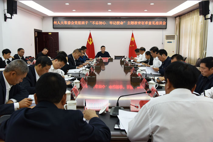 按照州委主题教育工作安排,这次主题教育要充分听取工作服务对象、基层党员群众对州人大常委会党组班子及班子成员存在突出问题的反映,对改进作风、改进工作的意见和建议。