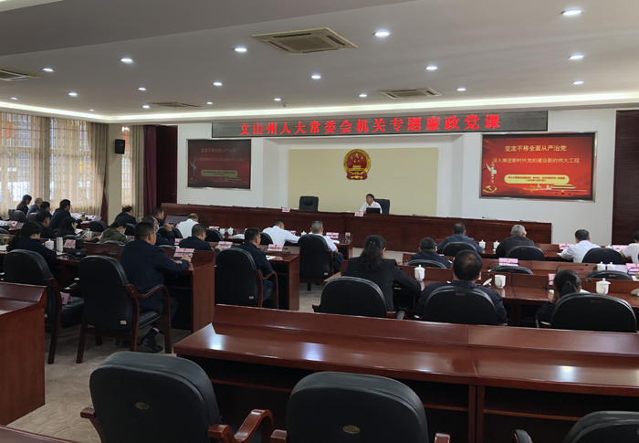 为贯彻落实全面从严治党总要求,全面加强纪律作风建设,结合机关党风廉政建设工作安排,11月18日,州人大常委会秘书长段自勇为全体党员干部上了一堂题为《坚定不移全面从严治党深入推进新时代党建设新的伟大工程》的廉政党课。