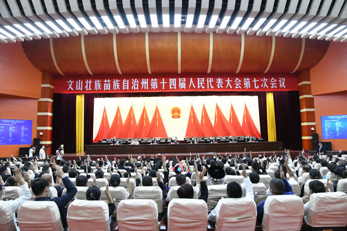 7月12日上午9时,文山州第十四届人民代表大会第七次会议在文山市会务中心报告大厅举行预备会议。