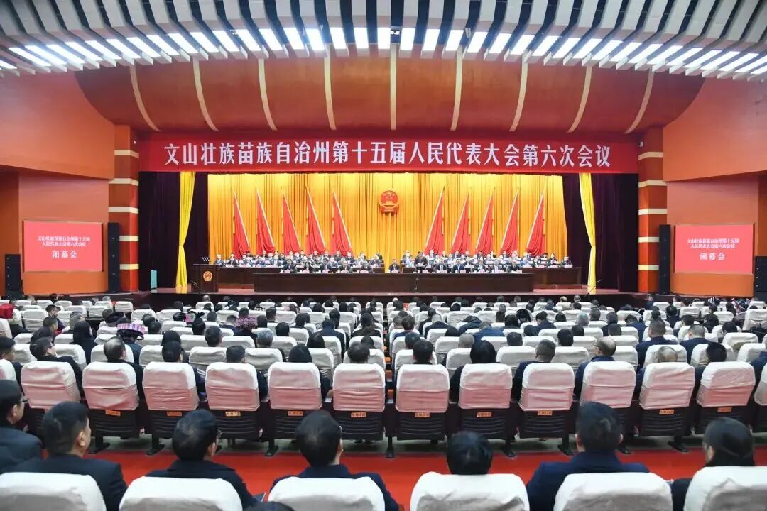 1月22日下午,文山壮族苗族自治州第十五届人民代表大会第六次会议圆满完成各项议程,在文山会务中心报告厅胜利闭幕。