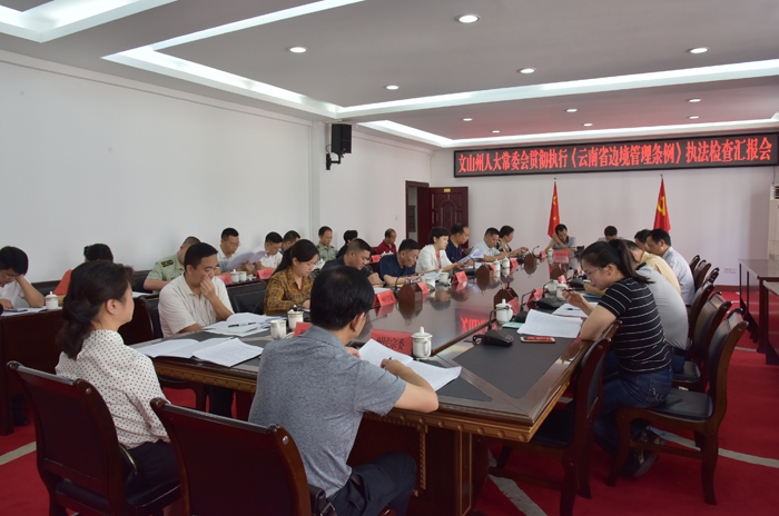 本站讯   为促进《云南省边境管理条例》在我州进一步贯彻实施,州人大常委会组成执法检查组,将对全州三个边境县和州属部分单位就贯彻实施《条例》工作情况开展执法检查。5月14日,州人大常委会召开贯彻执行《云南省边境管理条例》执法检查汇报会。